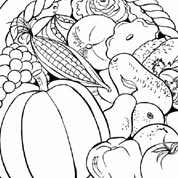 Rysunki do kolorowania - kukurydza, dynie, buraczki, fasolka, jabłka i gruszki, winogrona.