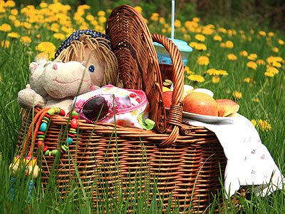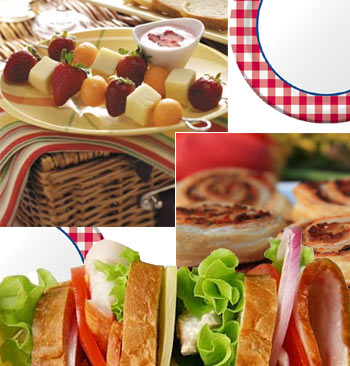 Jedzenie - pakując piknikowy koszyk musimy pamiętać, że na ucztowanie "pod chmurką" trzeba wybierać potrawy, które dobrze zniosą podróż, nie rozpadną się, nie zmiękną i nie popsuje się ich smak. Ważne jest też aby nie sprawiały kłopotu podczas jedzenia, czyli najlepiej takie, które można zjeść bez użycia sztućców.