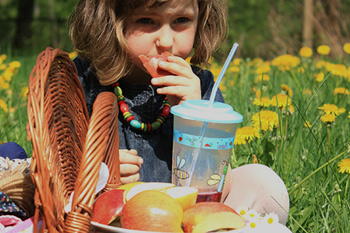 Napoje, szczególnie młodszym dzieciom, najlepiej podawać w butelkach z ustnikiem, w kubeczkach niekapkach czy bidonach ze słomką. Mamy wtedy pewność, że dziecko nie rozleje napoju, i że do środka nie dostanie się nieproszony gość - osa czy mrówka